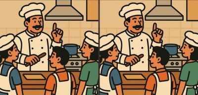 Dus, klaar voor de volgende uitdaging? Bekijk twee foto’s van een chef-kok die kooklessen geeft in de keuken. Op het eerste gezicht lijken deze afbeeldingen hetzelfde, maar als je dieper kijkt, zie je 3 kleine verschillen die slim in de afbeelding zijn verborgen. Kun jij ze allemaal vinden in slechts 19 seconden?
