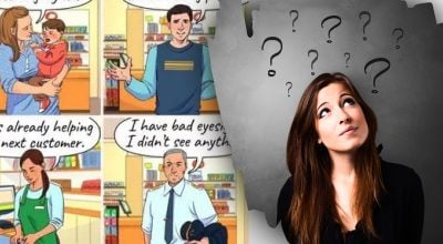 Het enige wat je hoeft te doen is naar de afbeelding hieronder kijken en bepalen wie van de mensen in de winkel iemands portemonnee heeft gestolen. Drie van de afgebeelde mensen vertellen de waarheid, maar één van hen liegt.
