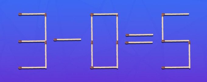Het is eigenlijk heel eenvoudig. Laten we het stap voor stap uitwerken. Het had geen zin om een lucifer toe te voegen aan het teken, omdat 3+0 gelijk zou zijn aan 3, en je kunt geen lucifer verplaatsen vanaf 5.