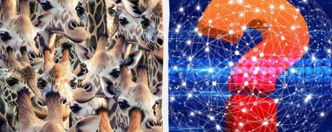 Een visuele puzzel met giraffen en een geit bevat een addertje onder het gras.