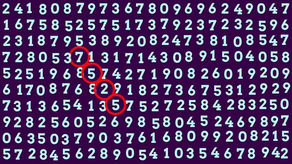 De volgende optische illusie kan iedereen in verwarring brengen, omdat je het getal 7525 moet vinden tussen het grote aantal cijfers in de afbeelding, schrijft jagranjosh.