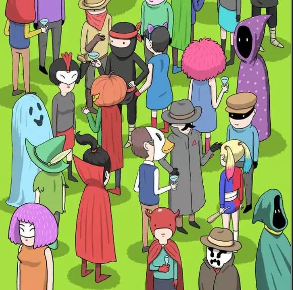 Sommigen zitten in groepjes bij elkaar, anderen drinken wat of staan gewoon wat rond te hangen. Maar heb je de dief al opgemerkt?