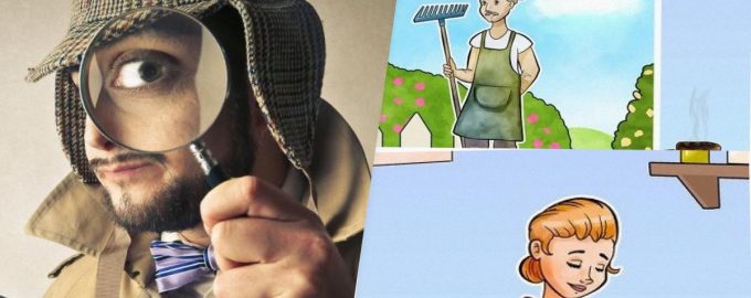 Portal jagranjosh.com biedt een moeilijke puzzel waarin je de dief op de afbeelding moet identificeren. In de afbeelding zie je een tuinman en een kok. Beiden worden ondervraagd door de politie vanwege de diefstal in het landhuis.