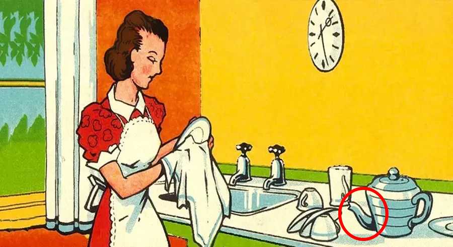Op de foto zien we een meisje dat aan het afwassen is. Het lijkt erop dat er niets ongewoons is, maar als je goed kijkt, wordt duidelijk dat één detail heel vreemd en onopvallend is.