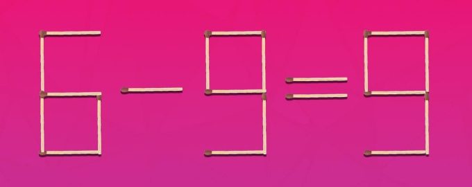 Je moest dus één lucifer van het getal 9 nemen en van het “-“-teken een “+”-teken maken.