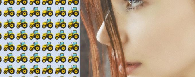 Vreemde tractor tussen 200 anderen / collage met foto’s van Moje en pixabay.com