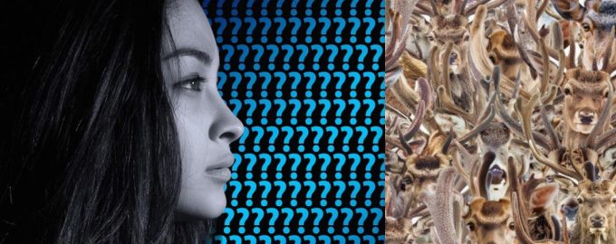 Het is noodzakelijk om een paard te vinden tussen de rendieren / collage met foto’s van pixabay.com en Moje