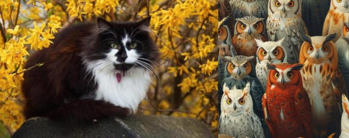 Je kunt proberen om te gaan met deze taak – in 6 seconden tussen fantastische uilen moet je een kat vinden, die verraderlijk genoemd kan worden. Als je goed oplet, kun je de kat met de verborgen staart misschien nog sneller vinden.