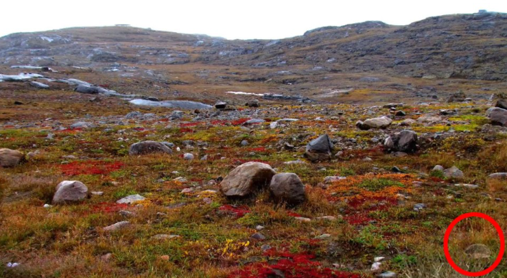 Op de afbeelding – een veld met stenen, bezaaid met gras en bloemen. Ergens zit een egel, die je moet vinden. Je hebt 15 seconden om de egel te vinden.