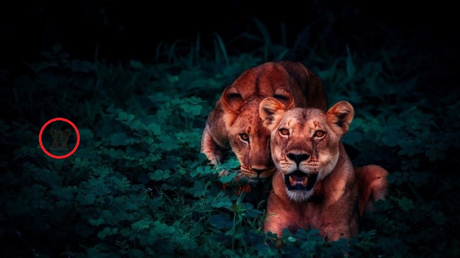 Vind een leeuwenwelp in slechts 8 seconden / fresherslive Als je het leeuwenwelpje niet kunt vinden, is hier een hint – kijk naar het gebied dichter bij de linkerrand van de foto.