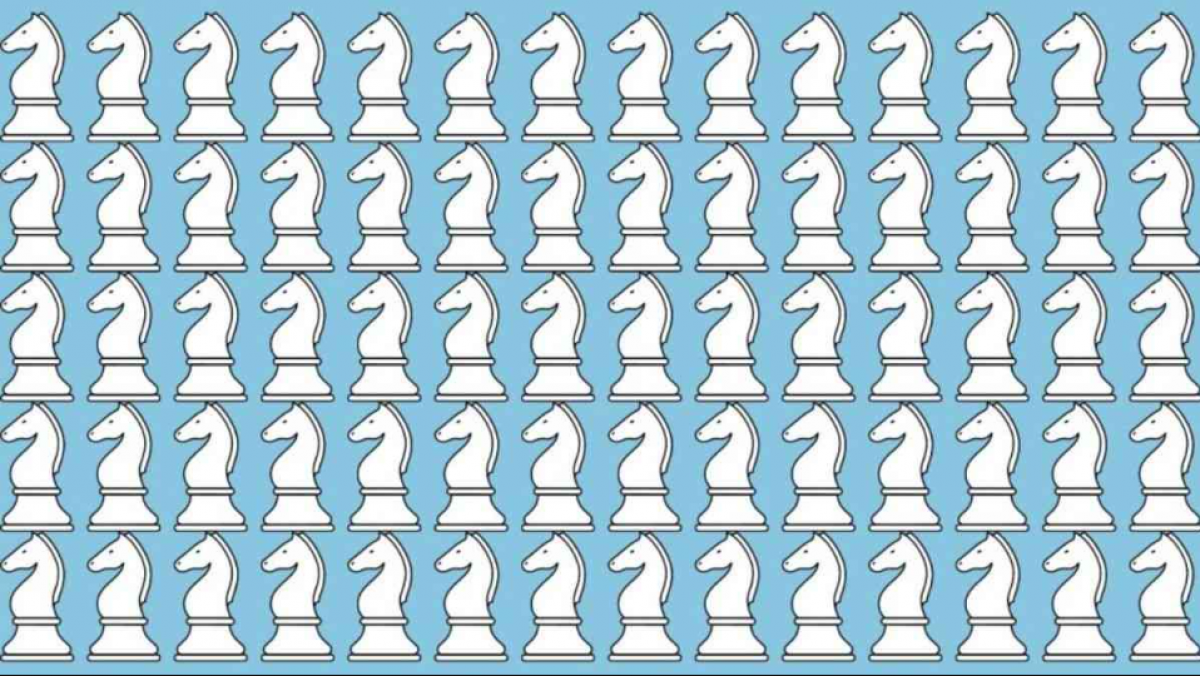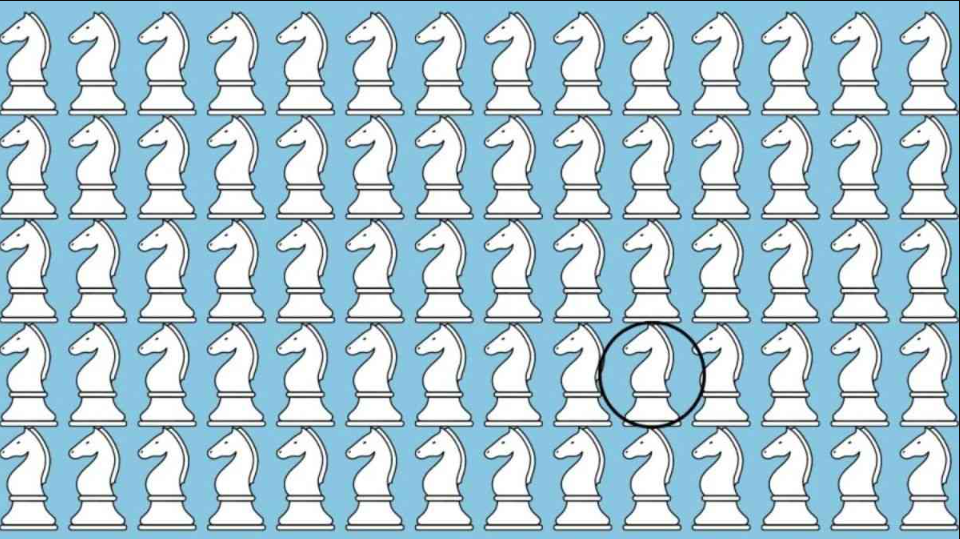 Op de afbeelding staan veel “ridder” schaakstukken. Jouw taak is om een stuk te vinden dat anders is dan alle andere.