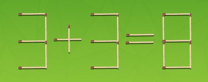 We bieden je aan om een wiskundige puzzel op te lossen. In de afbeelding zie je een onjuiste gelijkheid van 21 lucifers: 3 + 3 = 8. Je moet dit corrigeren door binnen 10 seconden slechts twee lucifers naar een andere plaats te verplaatsen.