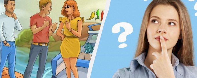 De puzzel laat twee mannen zien die voor een meisje naast een jacht staan en elk van hen probeert haar ervan te overtuigen dat hij de eigenaar van het jacht is.