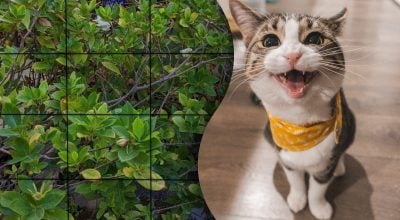 Zoek een kat in een boom in 5 seconden / collage: Glavred, foto: Twitter exdailyquiz, unsplash.com