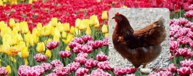 De kip stond de hele tijd recht voor je – tussen de roze tulpen. We hebben hem in het wit omcirkeld.