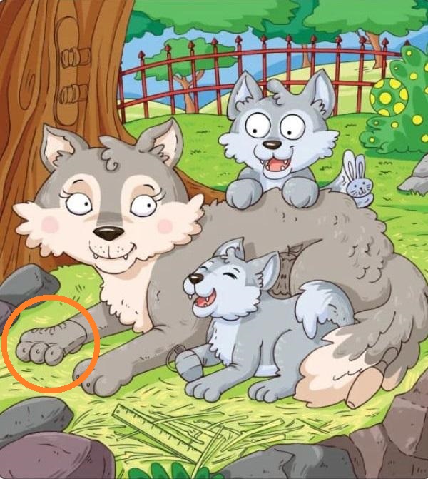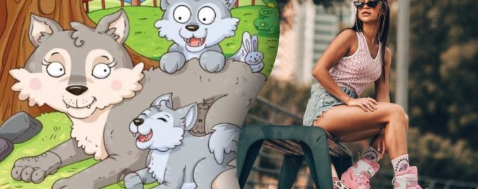 Op de foto zien we een moederwolf met twee wolvenwelpen. Op het eerste gezicht lijkt het alsof er geen rolschaatsen op de foto staan, maar vertrouw niet op je eerste indruk.