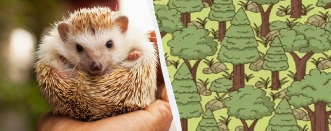 In de afbeelding hieronder zie je een dicht bos. Je moet een schattige egel vinden tussen de bomen, het gras en de rotsen. Als het je lukt in minder dan 30 seconden, heb je een scherp zicht.
