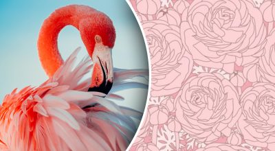 De flamingo is onderaan de afbeelding te zien. De aanwezigheid van veel roze bloemen op een roze achtergrond maakt het moeilijk om de vogel te herkennen, omdat hij ook roze van kleur is. In de afbeelding hieronder is de flamingo omcirkeld.