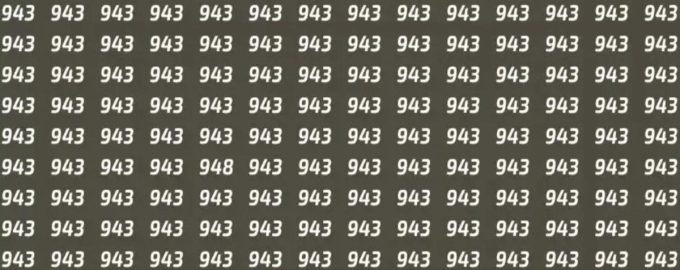 Maar je hebt slechts 10 seconden om deze puzzel op te lossen. Alleen mensen met scherpe ogen kunnen het verborgen getal 948 tussen de rij getallen 943 vinden.