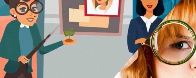 De vrouwelijke crimineel op de foto is een vrouw met een bril en een stok. Oplettende “detectives” zouden gemakkelijk kunnen vaststellen dat, als je goed kijkt, je kunt zien dat deze vrouw dezelfde ogen heeft als de foto van de dame aan de muur, evenals een opvallende moedervlek op haar gezicht. Deze details verraden haar, ondanks haar geslaagde vermomming.