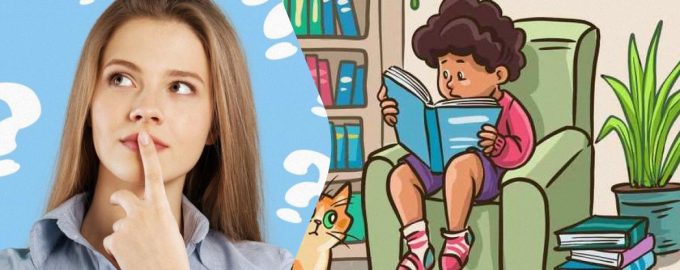 Er wordt een afbeelding gegeven waarin je een jongen op een stoel een boek ziet lezen. Vlakbij staat een kast met boeken en een roodharige kat. De afbeelding ziet er misschien eenvoudig uit, maar dat is alleen op het eerste gezicht. Als je goed kijkt, zie je dat er iets mis is met deze afbeelding.
