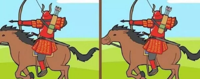 In de afbeelding hierboven zie je een krijger op een paard met pijl en boog. Op het eerste gezicht lijken de afbeeldingen identiek, maar er zitten drie kleine verschillen tussen. Je moet ze vinden in 18 seconden of minder.
