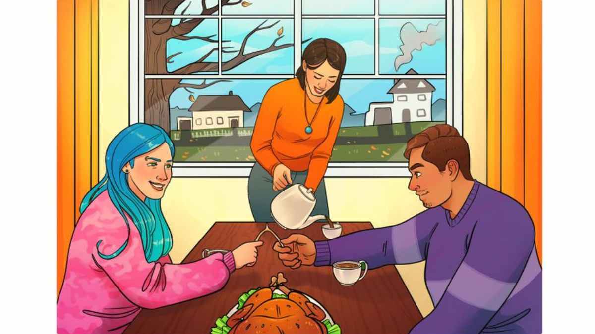 Kon je de fout in de afbeelding vinden? Zo ja, dan gefeliciteerd, je bent een echt genie! Als je de fout niet kon vinden, is hier een hint: de fout zit in de theepot die de gastvrouw vasthoudt.