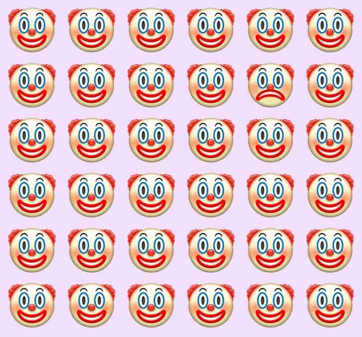 Er zijn veel grappige smiley’s in beeld, allemaal naast elkaar. Er zit ook een verdrietige smiley tussen. Je zult het niet meteen opmerken, omdat de illusie speciaal is gemaakt om je te verwarren. Maar aandacht helpt je om de sitie te begrijpen.