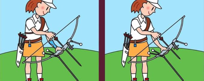 Je zult je best moeten doen om alle verschillen te vinden tussen de twee foto’s van het boogschuttersmeisje.