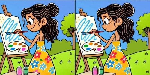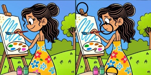 In de volgende puzzel moet je drie verschillen vinden tussen de foto’s die een meisje laten zien dat een tekening maakt, merkt jagranjosh op.