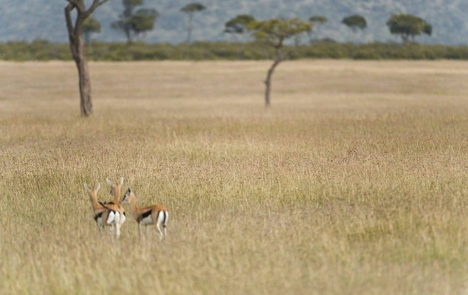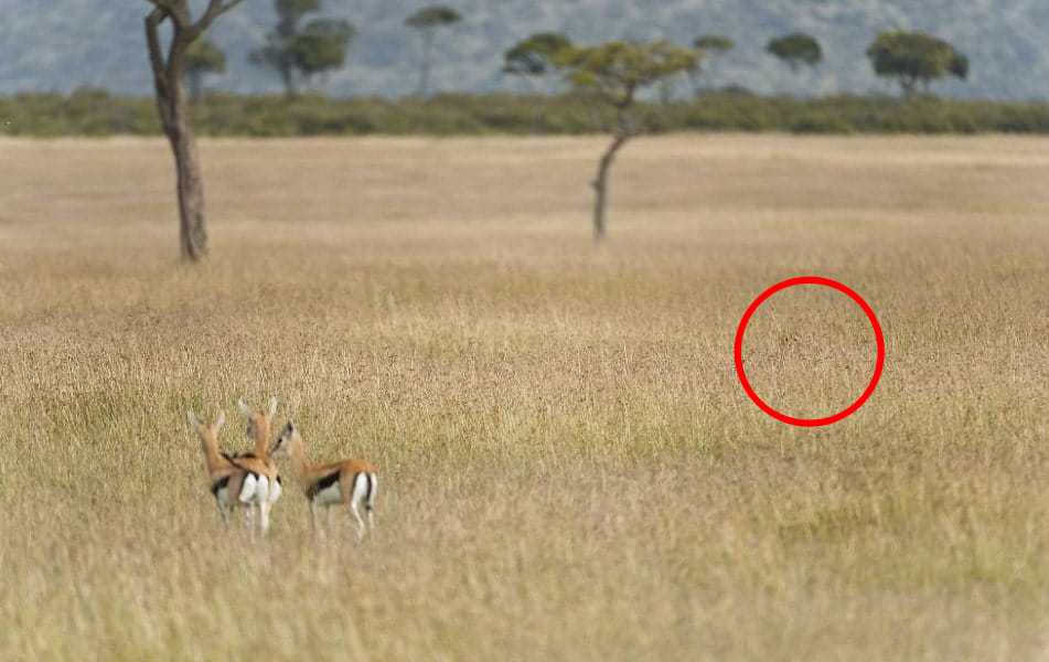 Op het eerste gezicht lijkt het alsof er op de foto alleen drie gazellen zijn, die we op de voorgrond zien. Maar in feite ligt er ook ergens een roofdier op de loer. De taak is om uit te vinden waar het zich precies verstopt.